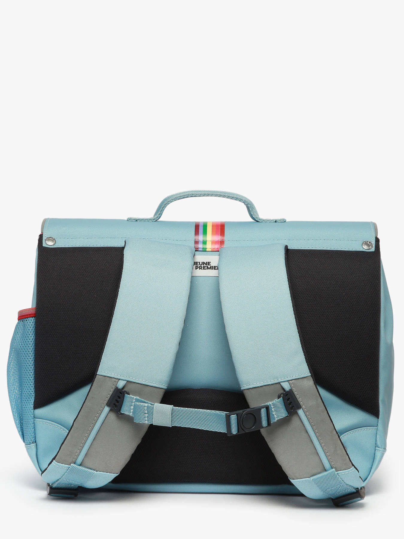 Deze JEUNE PREMIER schooltas met 2 vakken is ideaal voor kinderen van 6 tot 8 jaar, zowel voor meisjes als jongens. Gemaakt van robuust polyester, biedt hij comfort en functionaliteit voor de schooldagen. Aan de buitenkant heeft de tas een praktisch voorvak, een zijvak voor een flesje of klein voorwerp, en sluit hij gemakkelijk met een flap en een beveiligde sluiting. De verstelbare schouderbanden en het handvat zorgen voor een ergonomisch draagcomfort, zowel op de rug als in de hand. De binnenkant bestaat uit twee ruime vakken, een ritsvak en biedt ruimte voor een A4-map, een schrift van 24x32 cm en een A4-ordner.