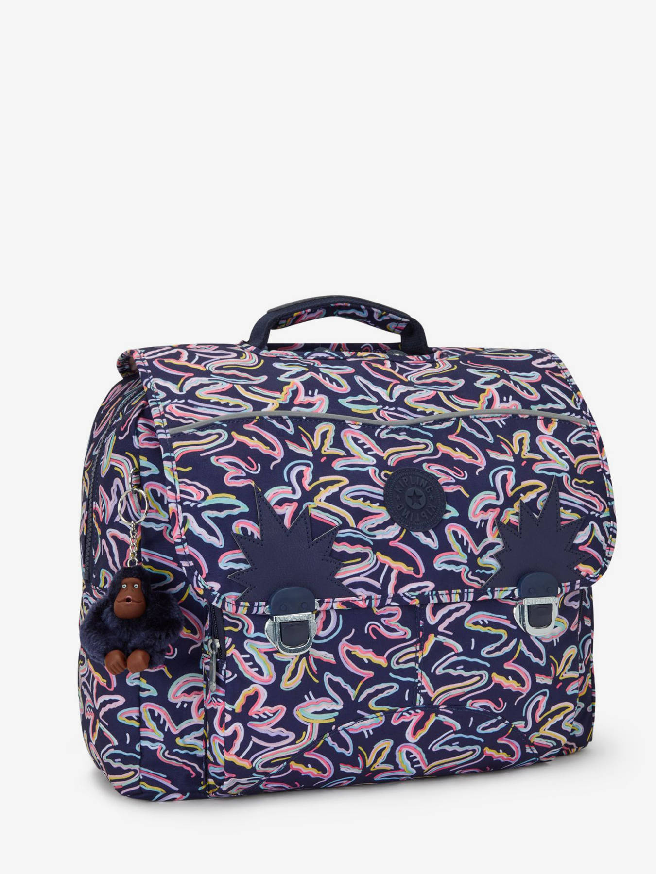 Kinderen houden van deze vrolijke 'Iniko' boekentas van Kipling! De boekentas is spraakmakend in de speeltuin, dankzij het speelse ontwerp en de ontdeugende prints. Binnenins is een ruim hoofdcompartiment (18 liter) met twee gescheiden opbergvakken voorzien, waar uw kind mappen en schoolboeken van A4 formaat in kan opbergen. Er is ook een handig ritsvakje aan de voorkant voorzien, om kleine spulletjes overzichtelijk in op te bergen. De schouderbanden en rugzijde zijn gewatteerd, om de rug van uw kind extra te ondersteunen.
