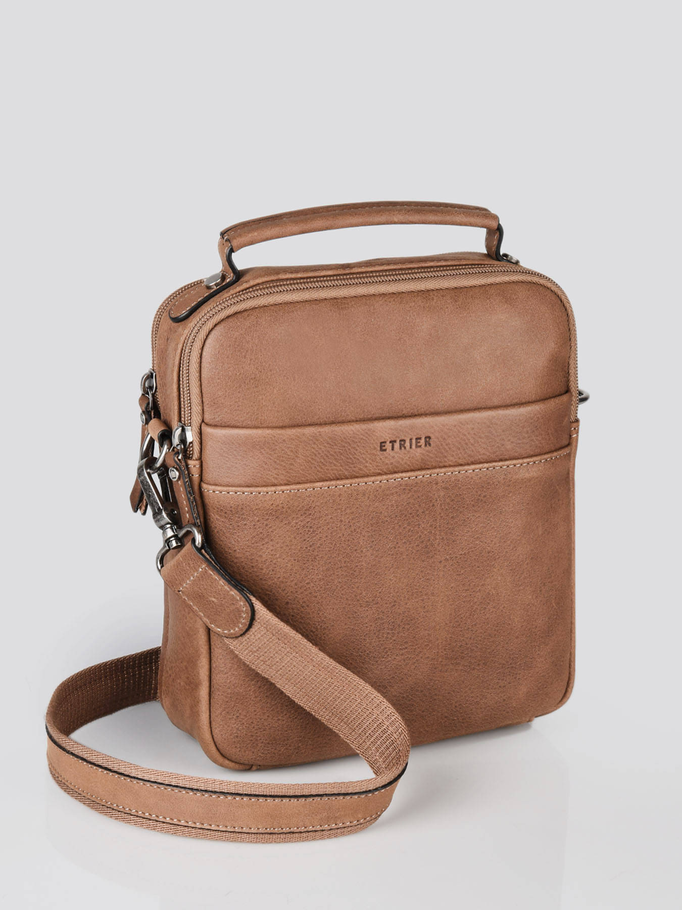 Deze schoudertas uit de Spider-lijn van Etrier zal u verleiden met haar prachtige kwaliteitsleer. Op de voorkant staat de merknaam gegraveerd. Ze heeft een vak met rits aan de buitenkant voor gemakkelijke toegang en één aan de achterkant. Ze beschikt over een verstelbare en afneembare schouderriem voor meer comfort. Binnenin vindt u 2 vakken met daarin een enkel vak, een vak met rits en twee plaatsen voor uw pennen. Een zeer mooi product voor dagelijks gebruik.