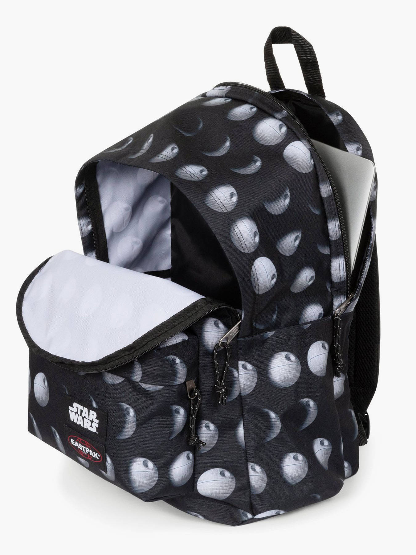 Rugzak 1 compartiment met 16" laptopvak van de lijn Eastpak x star wars van Eastpak, om ofwel in de hand ofwel op de rug te dragen.