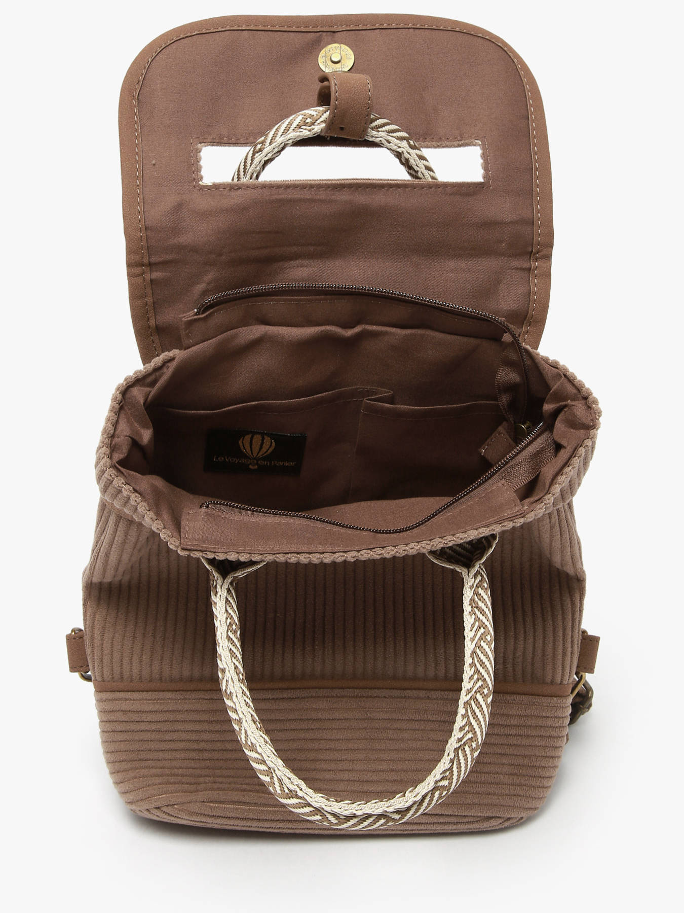 De rugzak Le Voyage en Panier Duvido Velours belichaamt een ontspannen elegantie en dagelijks gebruikscomfort. Gemaakt van polyester met een fluweelachtige uitstraling, overtuigt hij door zijn zachte textuur en verfijnde stijl, perfect om een chique vleugje aan je outfits te geven. De dubbele sluiting, bestaande uit een ritssluiting en een magnetische flap, combineert veiligheid en gebruiksgemak, terwijl de verstelbare schouderriemen zorgen voor comfortabel dragen op de rug of in de hand. De volledig met textiel gevoerde binnenkant omvat één hoofdvak en twee eenvoudige vakken voor een efficiënte organisatie van je essentials. Licht, functioneel en elegant, is de Duvido de perfecte metgezel die vrouwelijkheid, moderniteit en praktisch gebruik samenbrengt, trouw aan de authentieke geest van Le Voyage en Panier.
